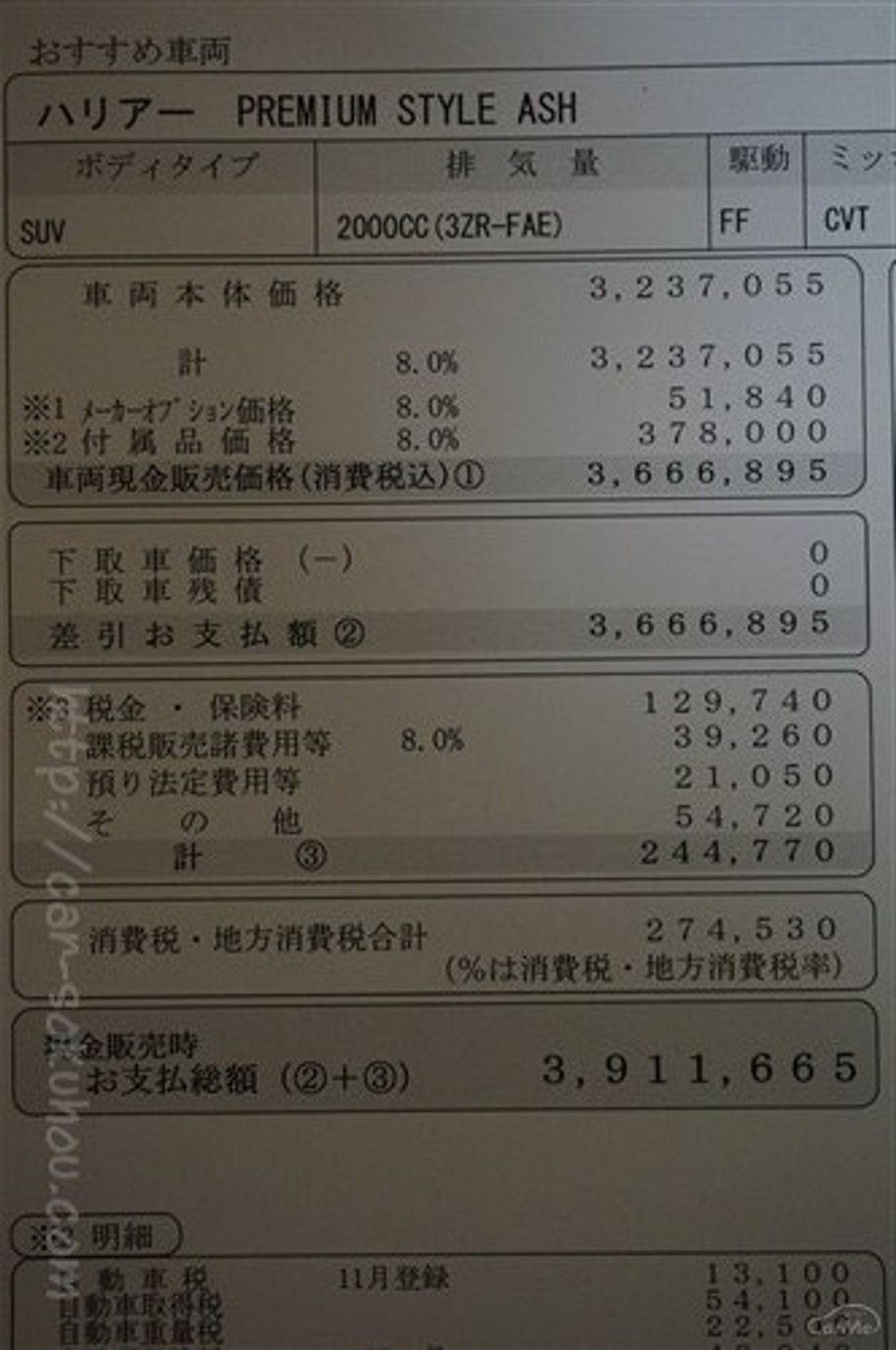 標準車との価格差は ハリアー スタイルアッシュの見積もり公開