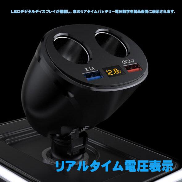 シガーソケット 車載充電器 電圧バッテリー表示急速充電 2連 増設カーチャージャー シガーライター 分配器 Usb 24v車対応 90度調節 爆買い新作 電圧表示 安全保護 配線不要 急速充電 12v カー用品